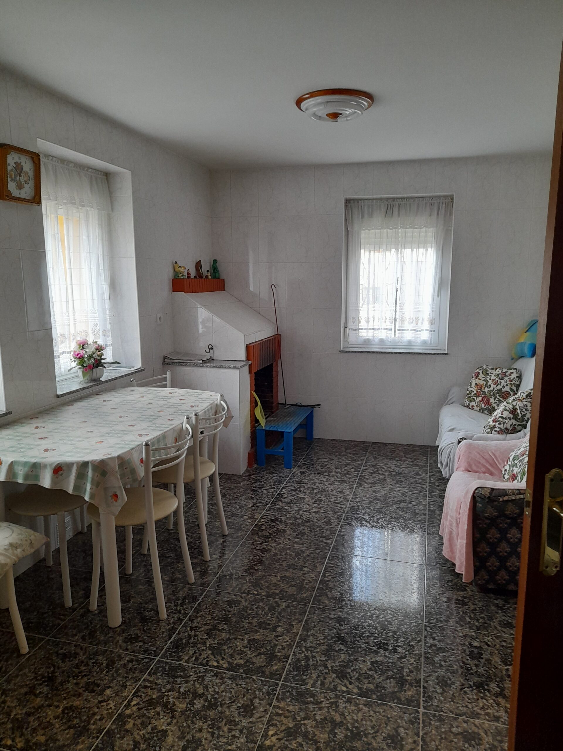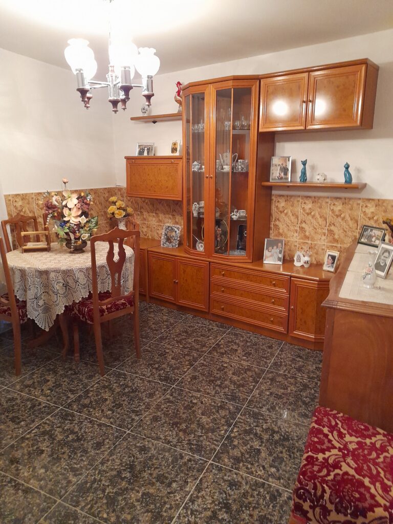 La casa se encuentra en el centro del pueblo, da a tres calles y es muy soleada.